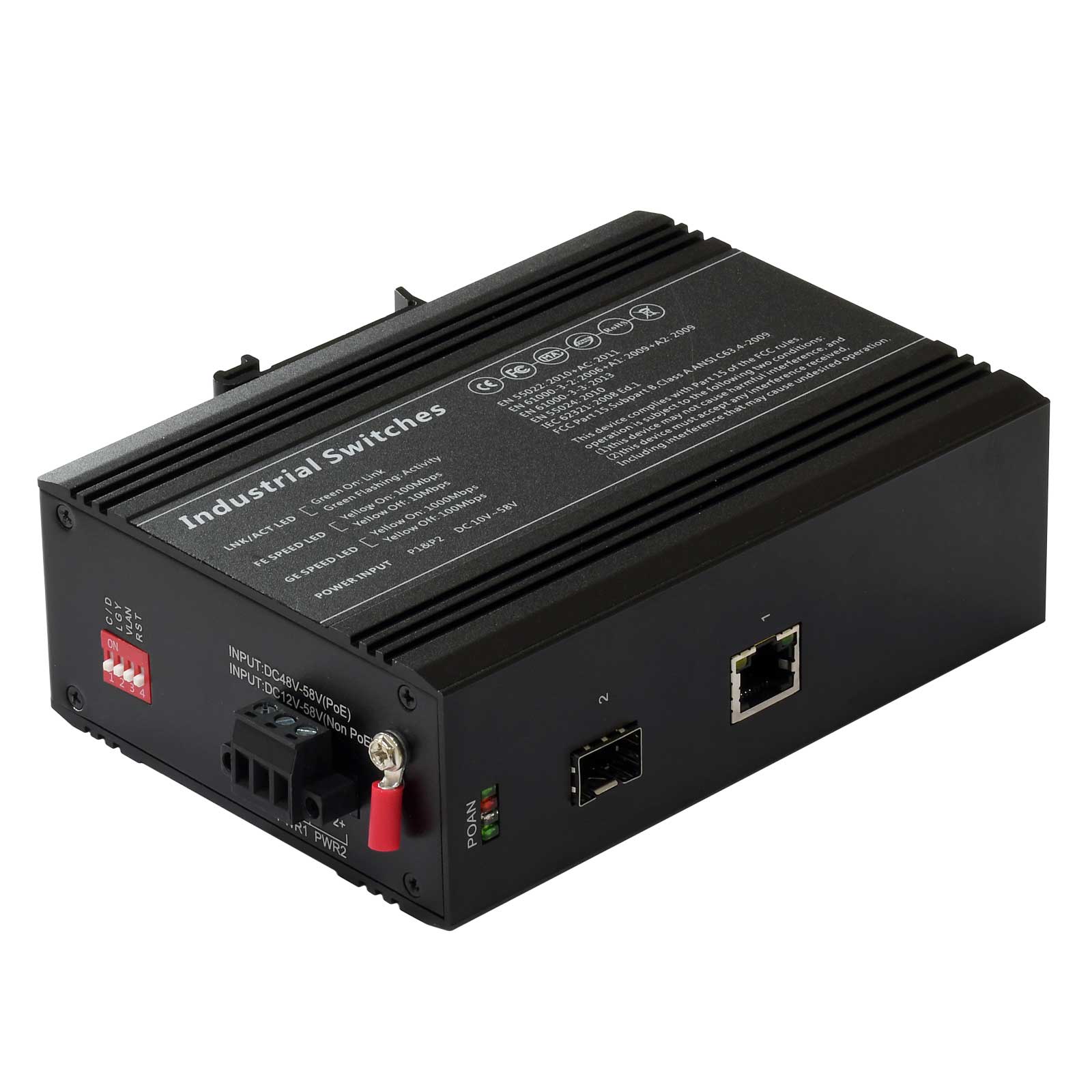 Цей пристрій є промисловим комутатором Ethernet 1 * 1G і 1 * 10/100/1000Base-T, PoE. Завдяки безвентиляторний конструкції схеми відведення тепла, широкого діапазону температур робочого середовища, високому рівню захисту та іншими технологіями, він забезпечує чудову промислове якість з високою термостійкістю і захистом від блискавок, а також підвищує надійність і безпеку промислових мереж.