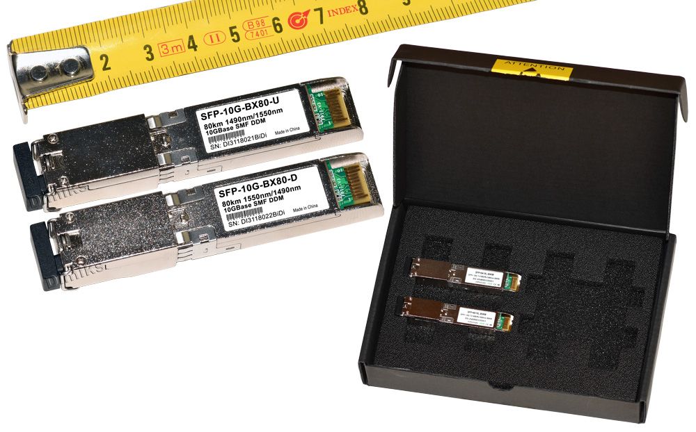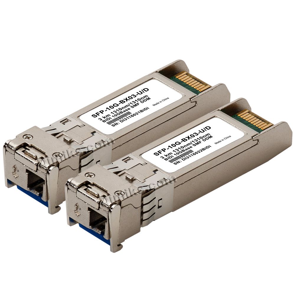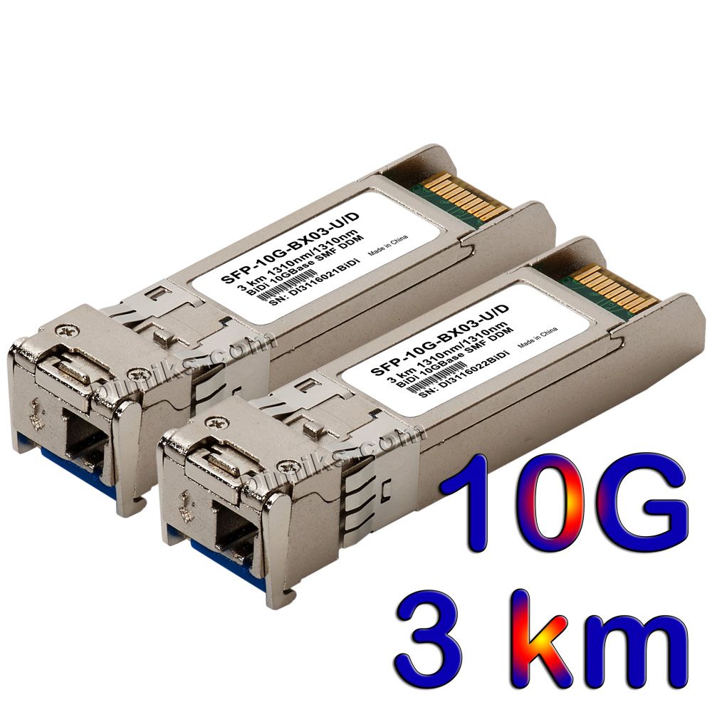 | SFP+ BiDi 10G 3km (NEW) | 10.3 Gb/s | 3 km (1.9 mi) | 1310nm/1310nm (модулі U та D однакові) |